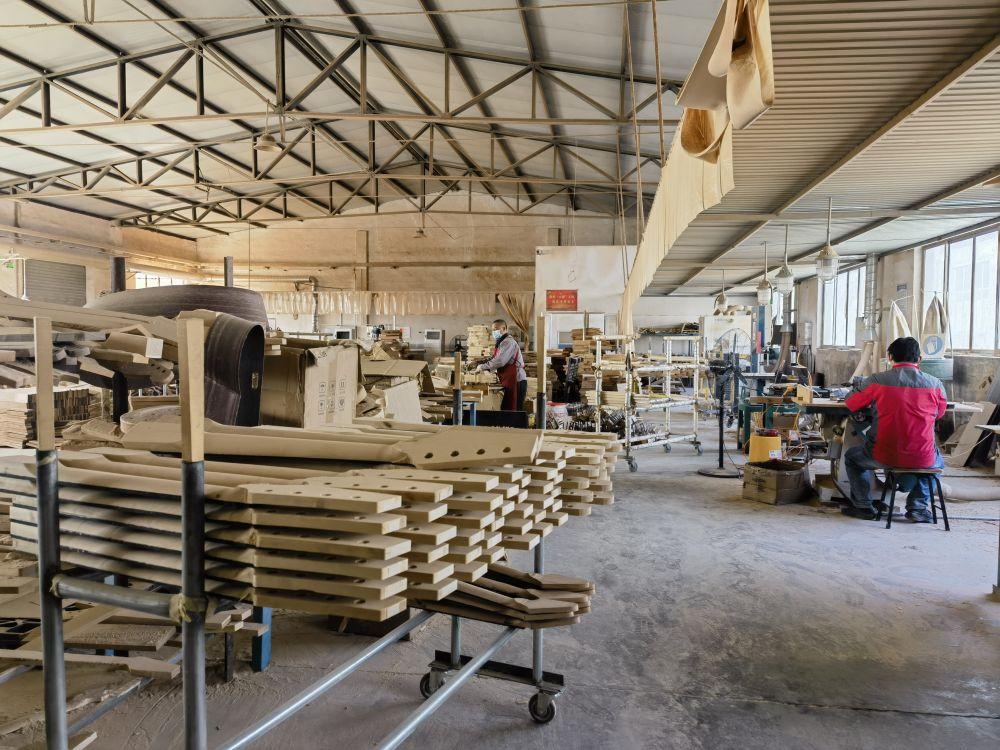 在潍坊大唐乐器发展有限公司,工人们正在加工木材。新华社记者 王志 摄