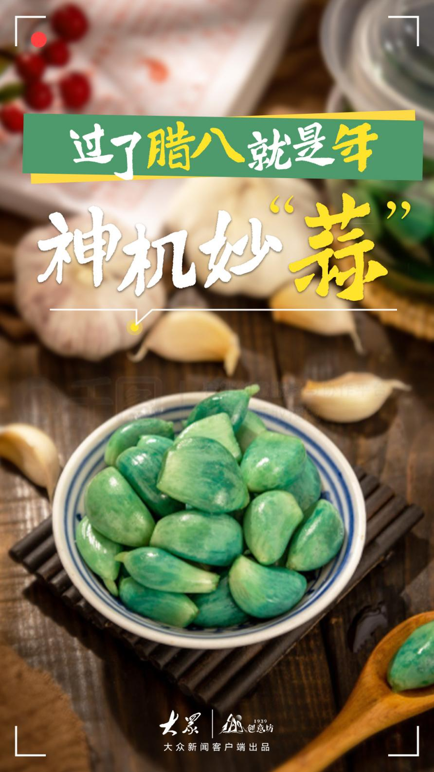 泡腊八蒜是腊八节节日食俗,富有“中国大蒜之乡”美誉的白桥镇腌制的腊八蒜最为有名。白桥镇位于山东省济南市商河县,大蒜种植面积达7万亩,年产大蒜10万吨,所产大蒜个大、皮红、色匀,多为紫皮蒜,具有瓣大、辣度高、品相好的特点。