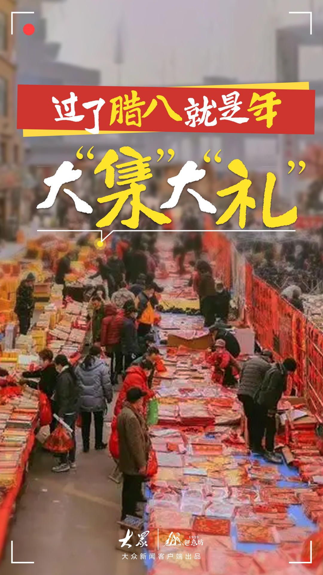忙年,从腊八开始。循着日益渐浓的年味和热腾腾的烟火气,一场精彩的烟火叙事在齐鲁大地徐徐铺展。“腊八”一到,家家户户置办年货的热情迅速高涨,年货大集成为了山东年味的重要组成部分,齐鲁非遗里的剪纸、杨家埠木版年画、山东花鼓、曹州面人、鲁绣等民间技艺,一齐亮相山东大集。