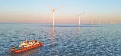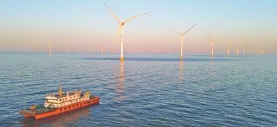 据统计,山东电网风电与光伏装机容量突破1亿千瓦,意味着一年可发1900亿千瓦时“绿电”,节约标煤5400万吨、减少二氧化碳排放超1.4亿吨。图为近日拍摄的位于山东省莱州市海域的海上风电项目。