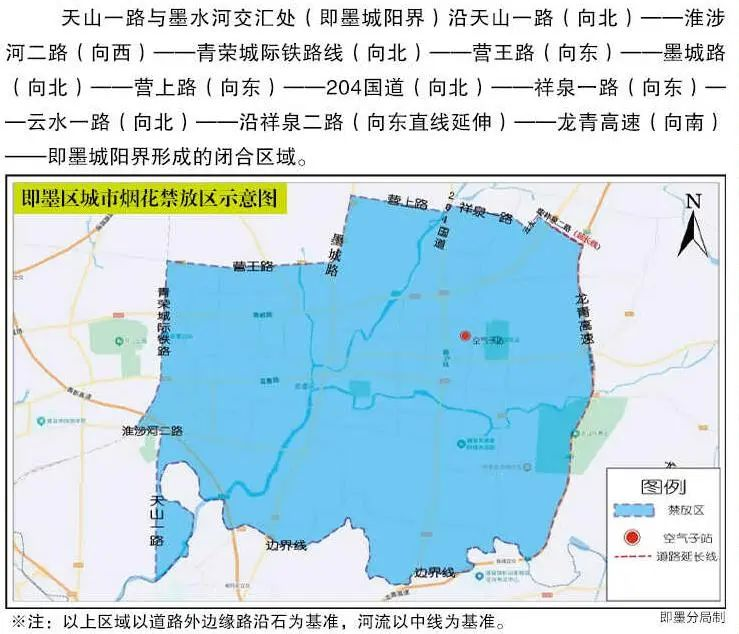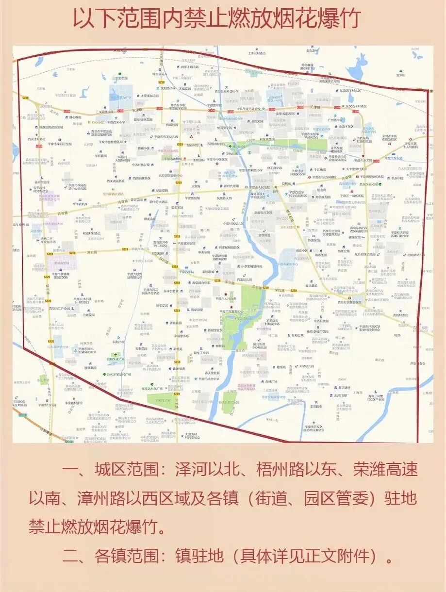 崂山区、城阳区、黄岛区、即墨区、胶州市、平度市、莱西市公布的禁放区如下: