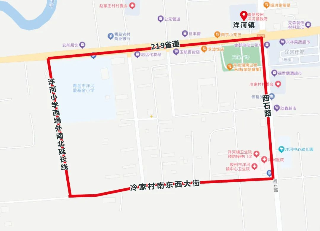 沙子口街道:北起圣水路(与李沧区、北宅街道交界),沿 S396 省道(圣水路至九水东路)、九水东路(S396 省道至崂峰路段)、崂峰路(九水东路至南九水河段)、南九水河(崂峰路至入海口段)向西延伸至与金家岭、中韩街道交界区域(未进行旧村改造的区域除外);巨峰景区。