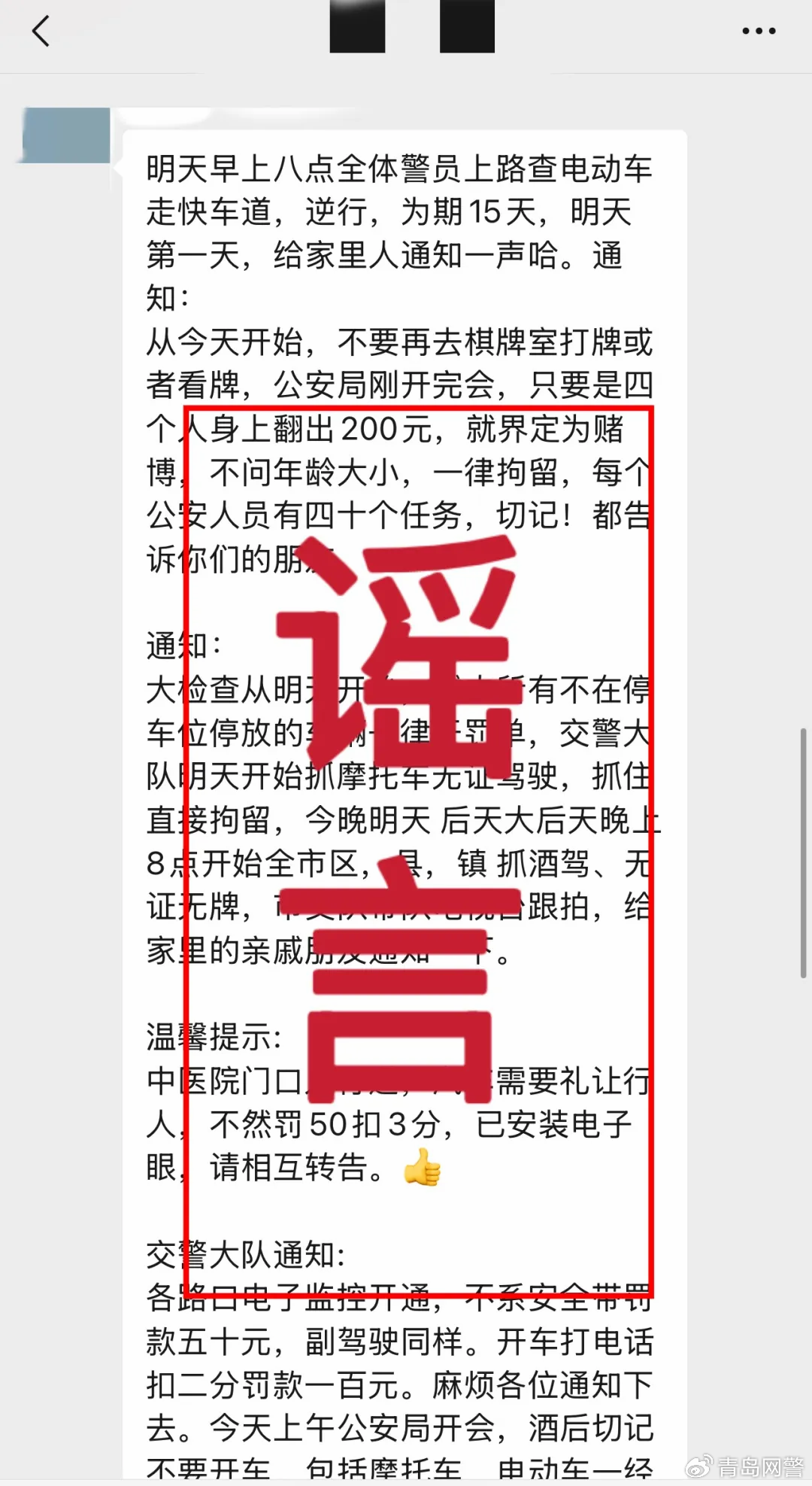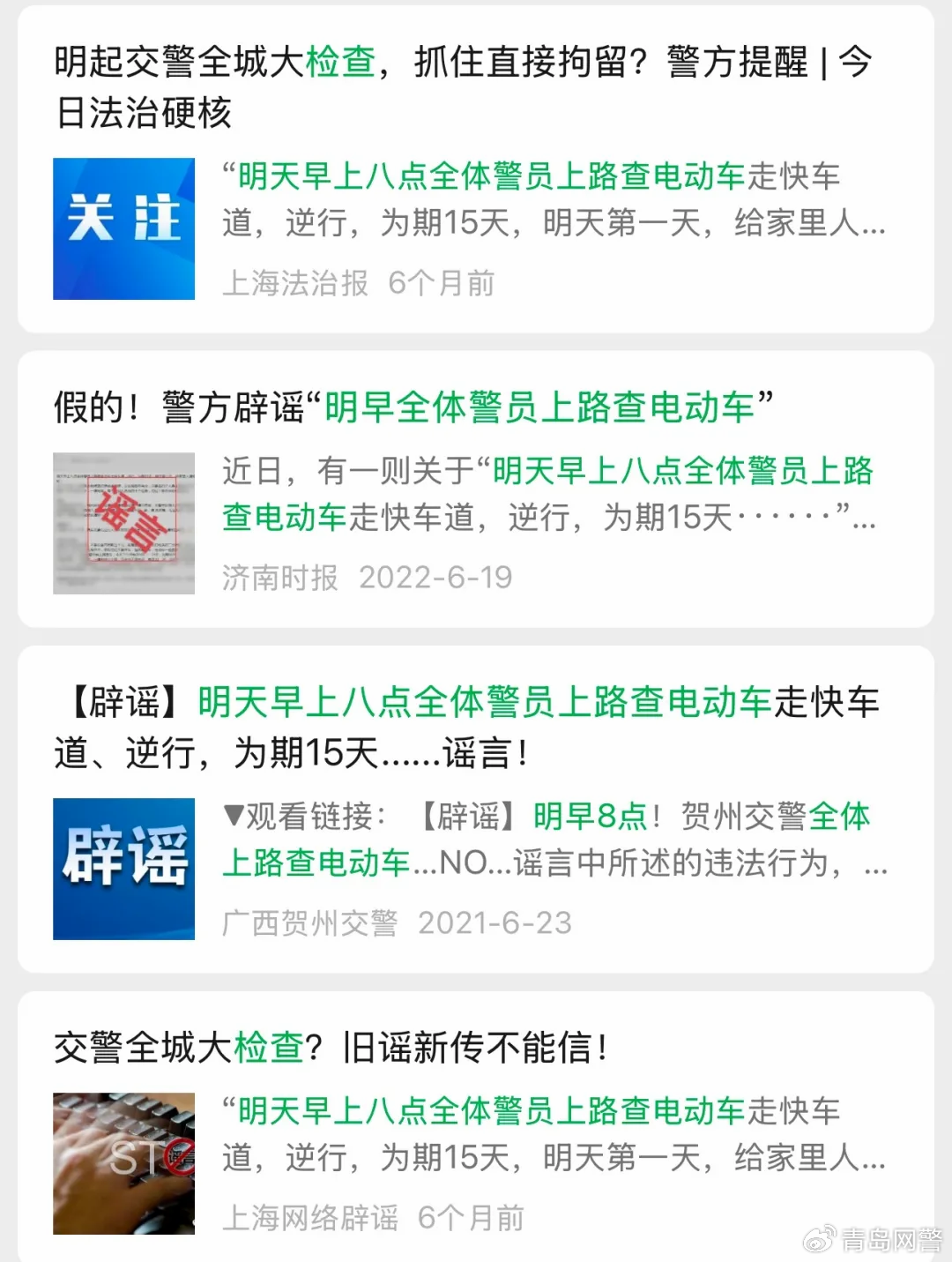 据@青岛网警消息,近日,一则“交警全城大检查”消息,在社交媒体上传播,引起网民关注和讨论。