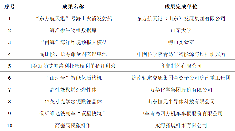 近日,2024年度山东省十大科技创新成果在济南发布,“东方航天港”号海上火箭发射船、“问海”海洋环境预报大模型、“山河号”智能化盾构机等10项成果获评2024年度山东省十大科技创新成果。