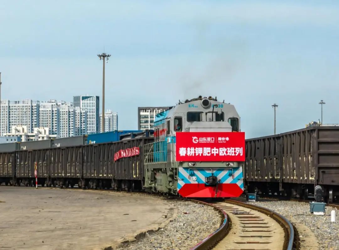 满载进口钾肥的中欧班列在山东港口烟台港完成卸车 图片来源/中国交通报