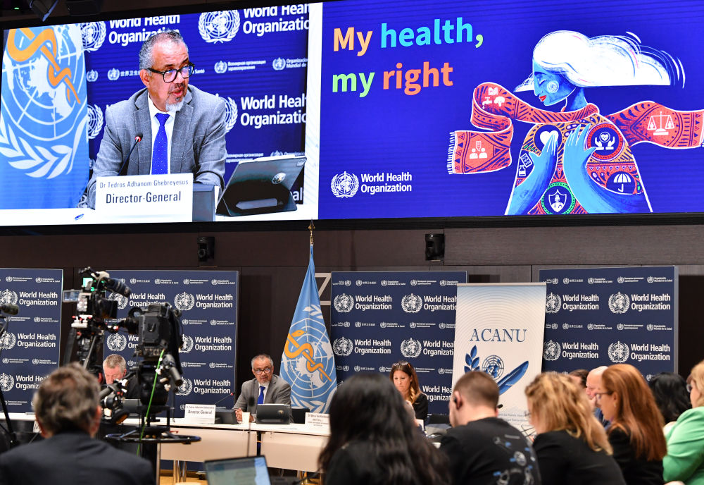2024年12月10日,世界卫生组织总干事谭德塞在瑞士日内瓦世卫组织总部出席年度新闻发布会并讲话。新华社记者连漪摄