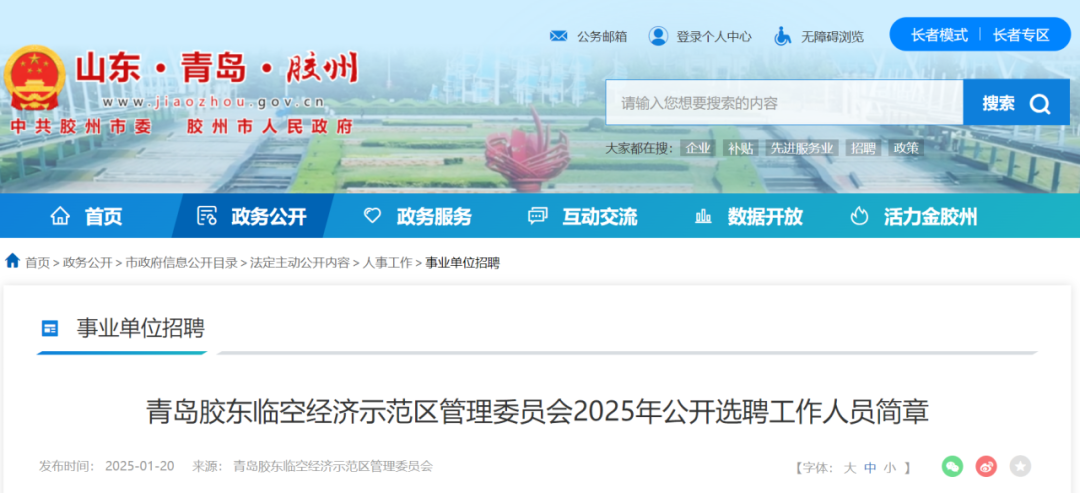 青岛胶东临空经济示范区管理委员会2025年公开选聘工作人员简章