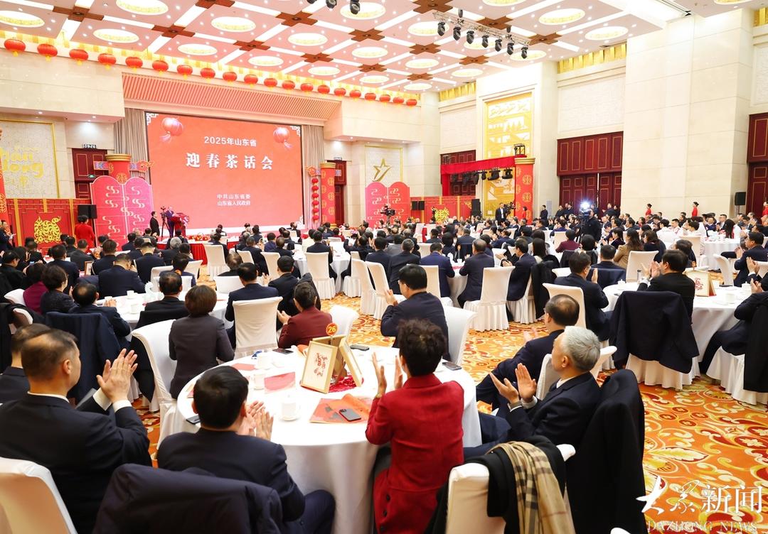 1月26日上午,2025年山东省迎春茶话会在山东大厦金色大厅举行,各界人士代表欢聚一堂、共迎新春。省委书记林武出席茶话会并致辞,代表中共山东省委、省人大常委会、省政府、省政协,向全省人民和关心支持山东发展的各界朋友,致以诚挚问候和新春祝福。