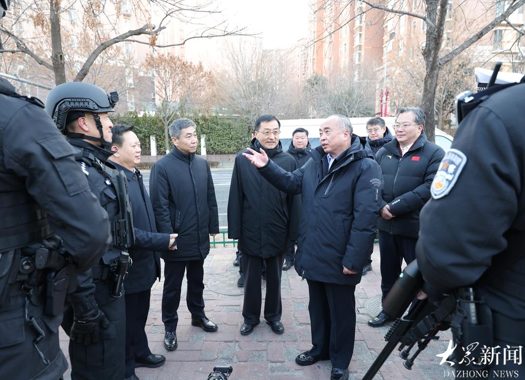 林武来到历下区旅游路与浆水泉路路口,看望慰问执勤交警和特巡警(民警)重装突击小队,察看新式警用装备,向他们并向全省公安民警辅警致以节日问候。希望大家不辞辛劳、坚守岗位,保障群众出行安全,维护良好社会秩序,为人民群众平安过节和经济社会发展保驾护航。