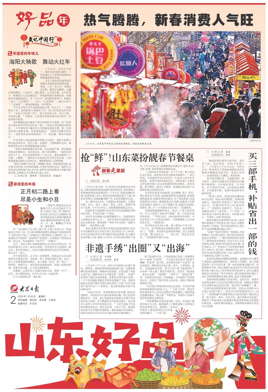 编者按:辰龙辞岁,巳蛇报春。春节期间,齐鲁大地洋溢着喜庆祥和氛围。大众日报·大众新闻记者深入基层一线、百姓生产生活,聚焦归乡游子、万家团圆、非遗民俗、干事创业……采集各地民风,写实百姓故事,感受收获满满的幸福年、四海同庆的团圆年、活力四射的文化年、人勤春早的实干年……充分展现我省经济社会发展的显著成就,以及各地民众祥和生活。敬请关注。
