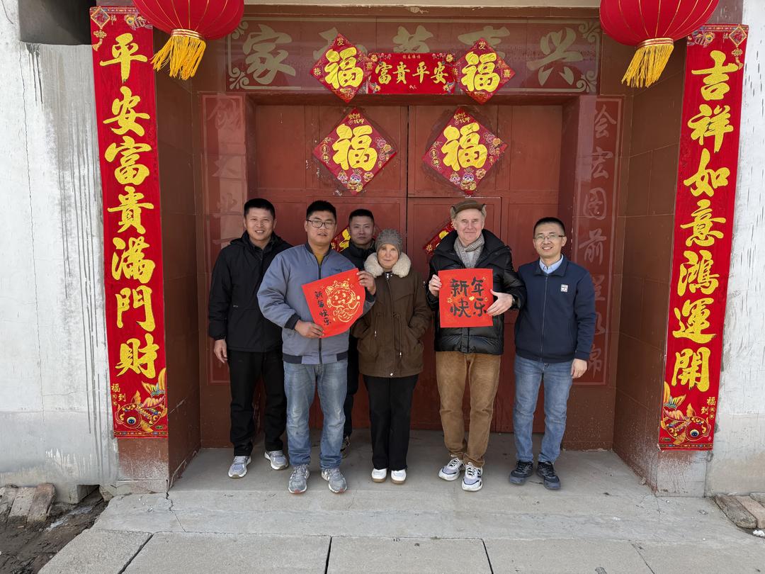 一进村,赖科夫就被满街红彤彤的对联吸引了。夫妇俩跟着大家一起贴对联,并把自己拓印的福字贴在了墙上。