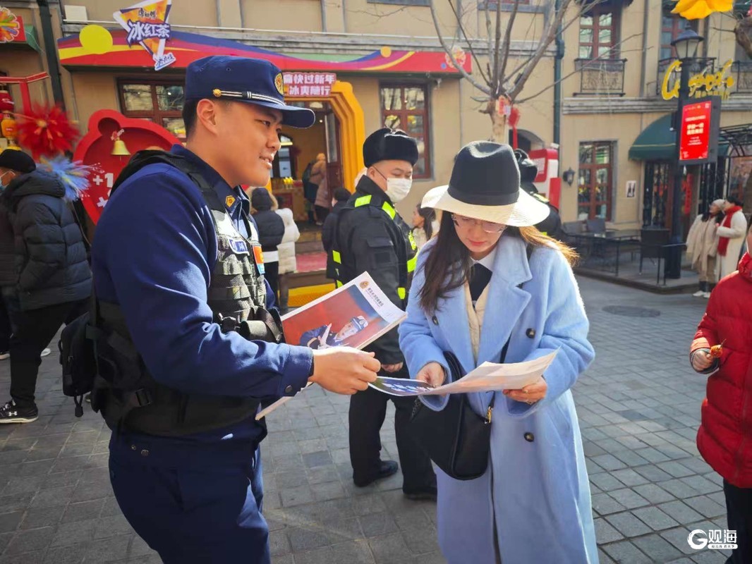 假期期间,大鲍岛文化休闲街区人潮如涌,热闹非凡。一大早,市北区消防救援大队的消防执勤人员便来到这里,“大家仔细排查火灾隐患,尤其是电气线路、消防设施以及疏散通道,一定要确保游客安全。”执勤队长带领队员开始了一天的工作。在街区广场处,消防宣传点前围满游客,宣传员拿着消防安全宣传手册,向游客讲解火灾预防和逃生自救知识。
