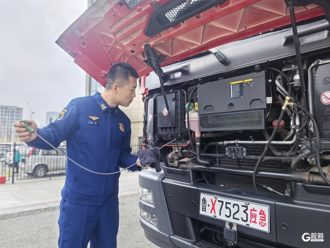 在即墨区服装城消防站,这里同样是一片忙碌而有序的景象,虽然没有警情,但队员们丝毫不敢懈怠,正抓紧时间对消防车辆和装备进行全面细致地检查和维护。在通讯室,值班员全神贯注地盯着电脑屏幕,密切关注着城市各个区域的消防安全动态。