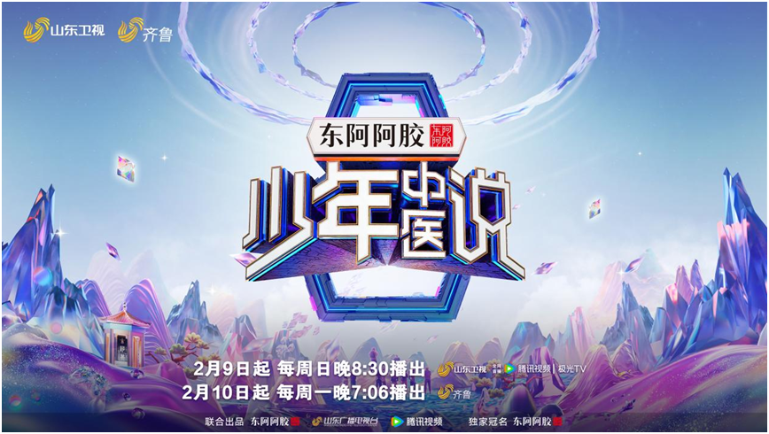 由东阿阿胶股份有限公司、山东广播电视台、腾讯视频联合出品的养成系中医药文化节目《少年中医说》官宣定档。2月9日起,每周日晚8:30腾讯视频全网首播,山东卫视同步播出;2月10日起,每周一晚7:06齐鲁频道播出。