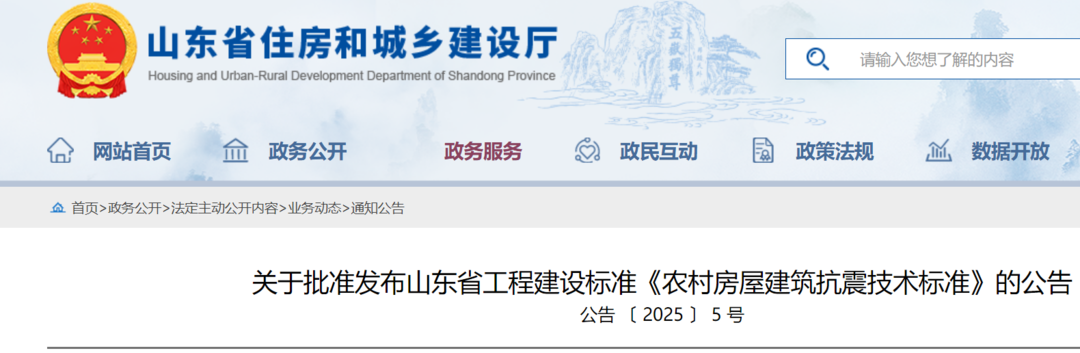 2月10日,记者通过山东省住房和城乡建设厅官网获悉,近日,山东省住房和城乡建设厅与山东省市场监督管理局联合发布公告,批准发布山东省工程建设标准《农村房屋建筑抗震技术标准》,自2025年5月1日起施行。