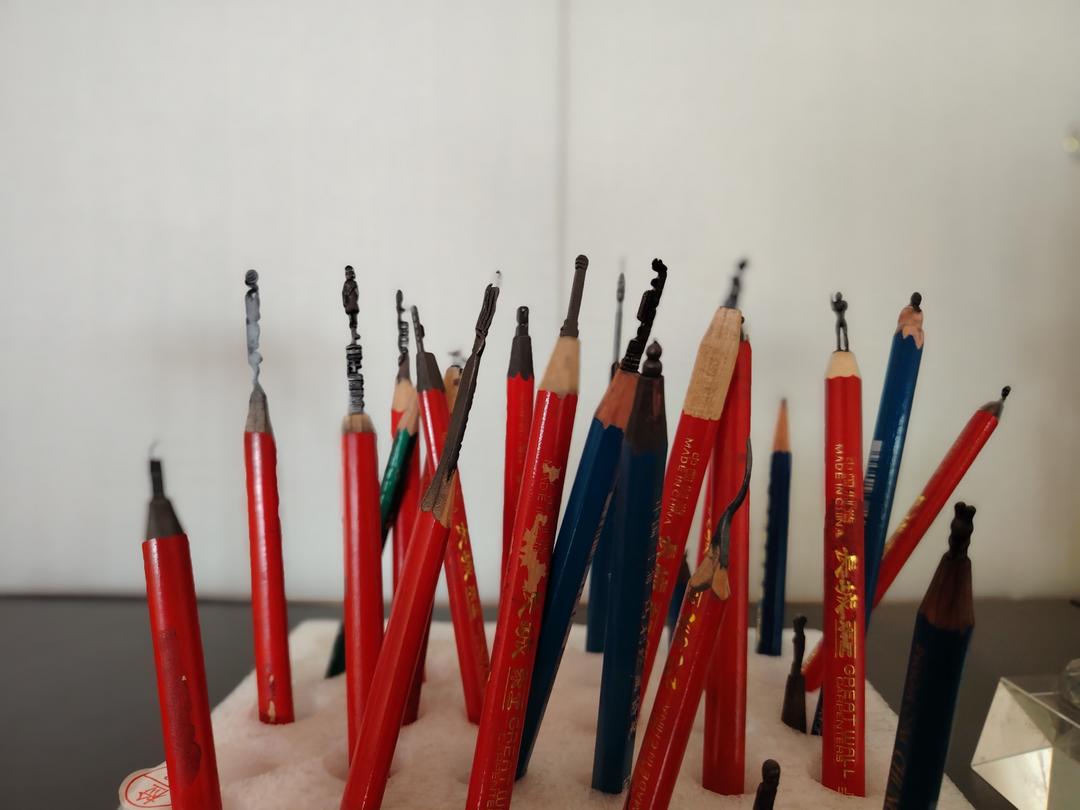 而最让沈靖宇爱不释手有成就感的,便是笔芯微雕作品。