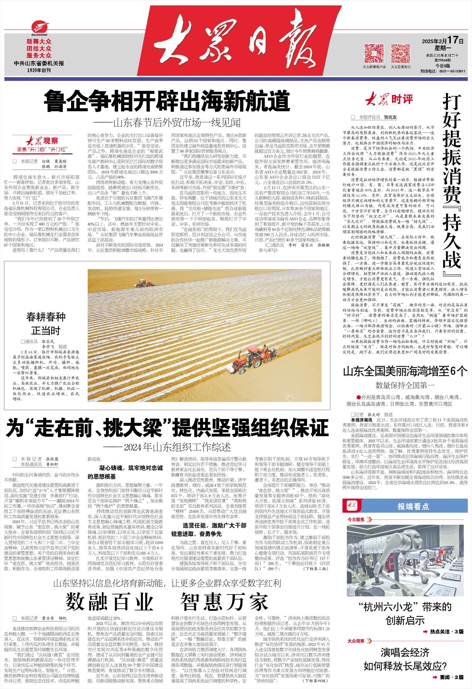 锻造现代化强省建设需要的高素质干部队伍,加快打造“2+N”人才集聚雁阵格局,深化实施“党建引领 齐鲁前行”行动,开展“履职本领提升年”……翻阅2024年的工作簿,一串串高频“热词”,镌刻着全省组工干部拼搏奋进的足迹,见证着山东组织工作高质量发展的累累硕果。