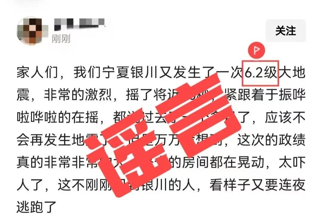 2月20日20时许,网警巡查发现,永宁县网民吴某某在今日头条平台发帖称“家人们,我们宁夏银川又发生了一次6.2级大地震”,引发部分网民误解误读。经公安机关核查,吴某某发现帖文信息中地震等级与官方通报不符,便自行删除该信息。