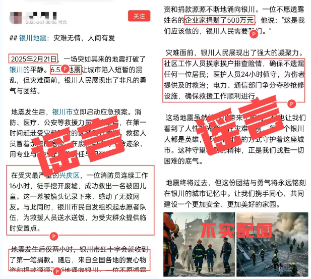 2月21日08时许,网警巡查发现,河北省网民李某在今日头条平台上发布了一条标题为“灾难无情 人间有爱”涉银川地震虚假信息,杜撰消防员挖开废墟救人、企业家捐款等内容,造成不明真相网友误解。