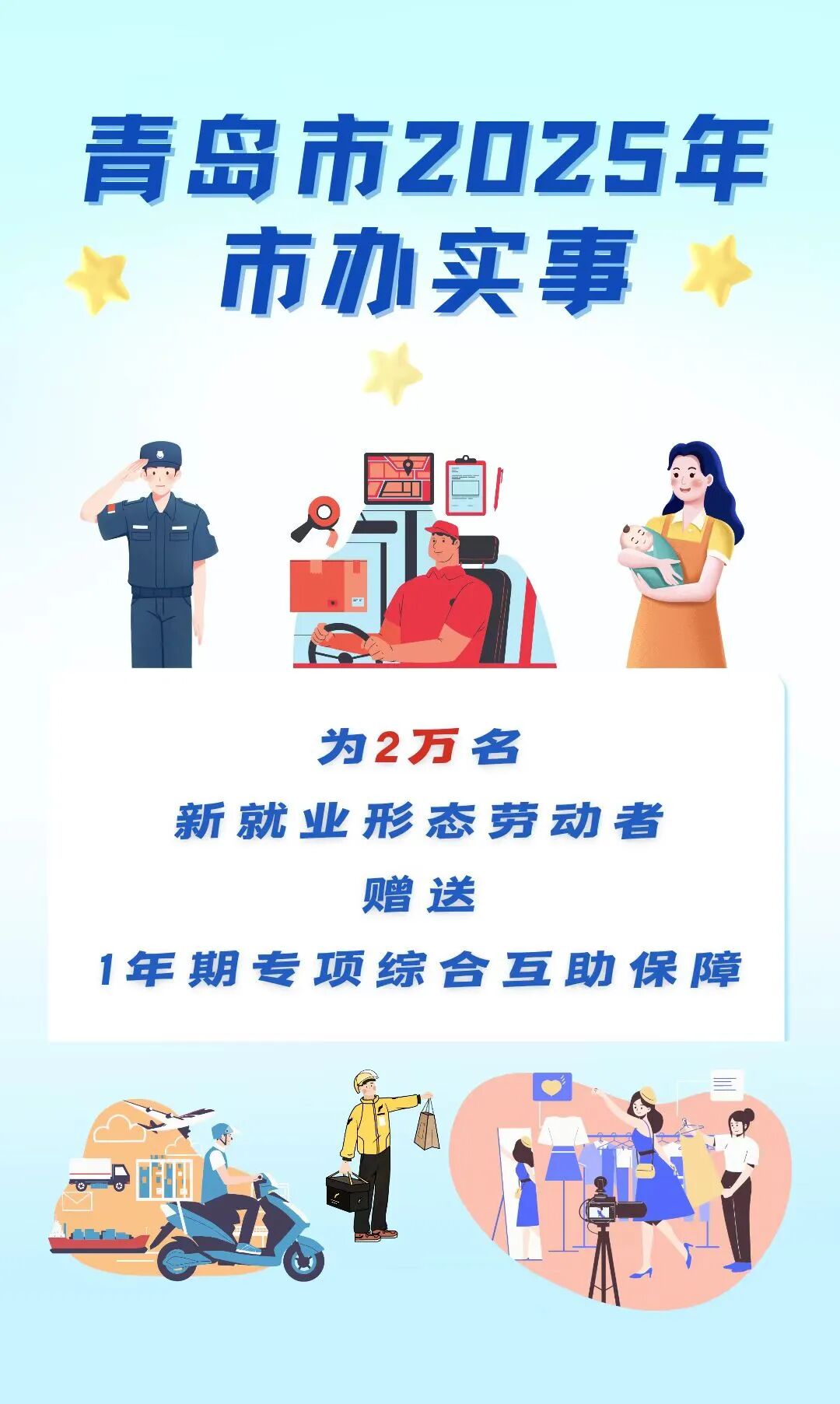 2月初,青岛市政府公布了2025年15件市办实事,涵盖就业、居住、教育、医疗等基本民生领域。市总工会“为2万名新就业形态劳动者赠送1年期专项综合互助保障”列为首项,设立“重大疾病+意外伤害保障”,或“重大疾病+女职工特殊疾病”两种组合,覆盖30类重大疾病、12类女职工特殊疾病,以及交通事故等意外伤害,最高可报销21.5万元。