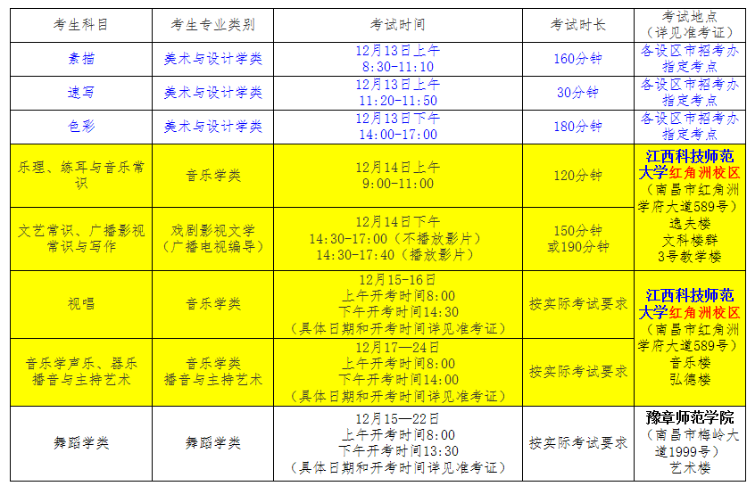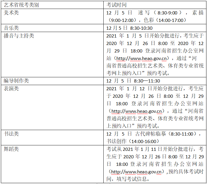 (注:以上内容为人工整理,如有变化,请以最新的省统考时间和考试防疫要求为准)