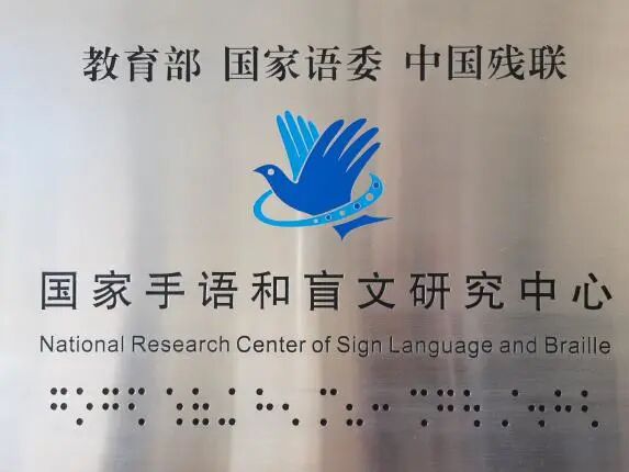 国家手语和盲文中心的LOGO是一只象征手语的飞鸽,环绕四周的盲文弧形飘带形似字母C,兼有China、Communication、Cooperation、Creation等义。