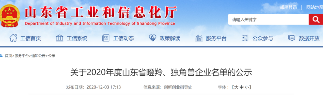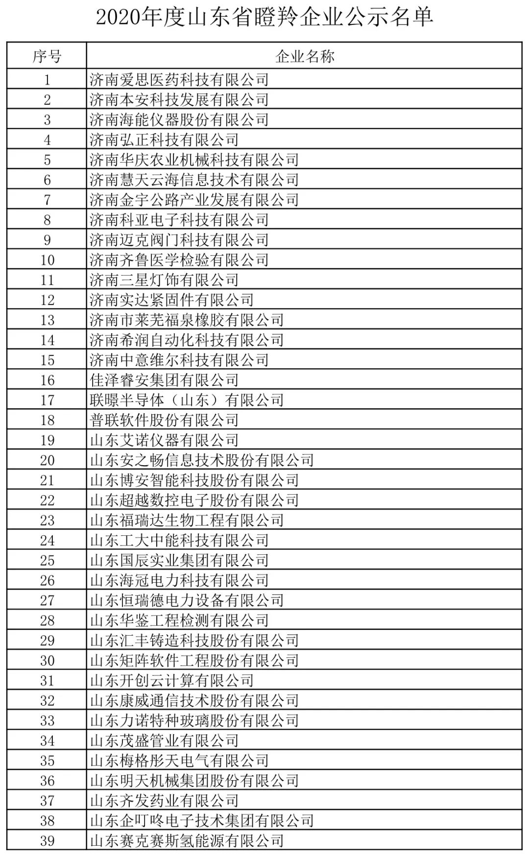 关于2020年度山东省瞪羚、独角兽企业名单的公示