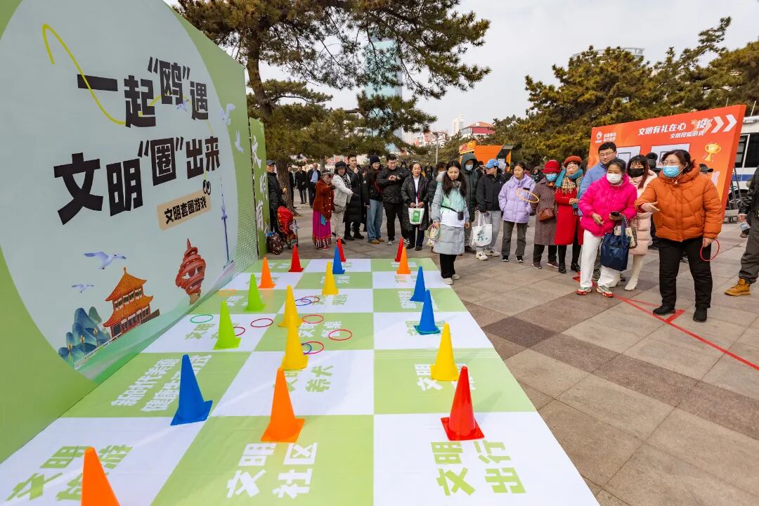 升级全民参与“新玩法”。1月,“鸥遇青岛 爱满旅途”主题活动,百余名游客市民踊跃参与“文明美德 有你有我”市民有奖问答。2月,“相约美好春天行”活动创新设置“文明贴贴乐”游戏、“一起文明圈出来”套圈游戏等,吸引现场千余人参与。3月,“乐享山海文明行”活动在此基础上增加“跟所有的不文明说‘拜拜’”保龄球游戏,系列活动累计吸引万余人次体验互动,形成全龄友好、全民友好的文明培育良性互动。