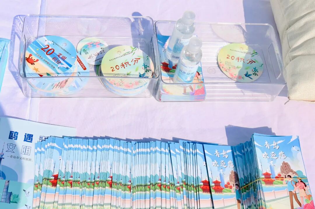 体验文明实践“微积分”。将文明观鸥、文明旅游融合新时代文明实践体验展示区,以文明实践活动为纽带,实现文明行为践行与激励的“循环流动”、市民游客文明实践体验和商家店铺美德信用实践的“双向奔赴”(市民游客在文明旅游活动中获得相应积分,可活动现场兑换实物,如“60积分=1个海鸥马克杯”“40积分=1个文明实践抱枕”,也可同步参与青岛市中山路文明实践体验展示区文明联盟餐饮店,如绛雪青岚、东方早茶、木滋嗒味等商家的优惠活动)。