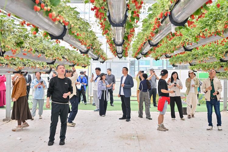“草莓长在空中,形式非常新颖。现代农业加入科技元素,发展可谓日新月异,呈现出不一样的中国农业,希望未来可以看到更多不同形式和发展方向的农业模式。”网络名人@饭统戴老板意犹未尽。