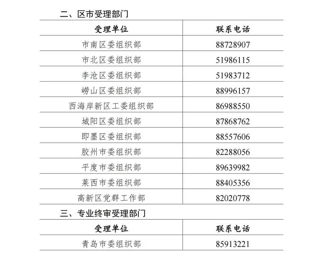 附件:受理部门及联系电话