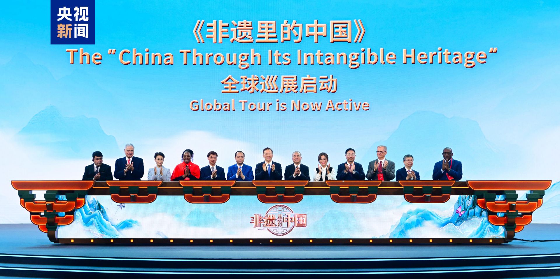 活动现场,山东省委书记、省人大常委会主任林武,中宣部副部长、中央广播电视总台台长慎海雄,中央广播电视总台副台长齐竹泉,山东省委常委、宣传部部长白玉刚,山东省副省长王桂英,中央广播电视总台编务会议成员姜文波与柬埔寨新闻部大臣奈帕德拉、哈萨克斯坦总统广播电视总局总经理卡日巴耶娃、肯尼亚广播公司总裁恩古纳、美联社副社长兼全球媒体服务总裁布莱德、巴西旗手传媒集团总裁萨阿德、非洲广播联盟首席执行官贾卡、塔吉克斯坦“扎洪纳莫”国家电视台台长戈伊布共同启动《非遗里的中国》2025年全球巡展。该巡展将荟萃中国非遗精品,向世界展现中国非遗的非凡魅力,致力于打造中华文化对外交流的“国家名片”。