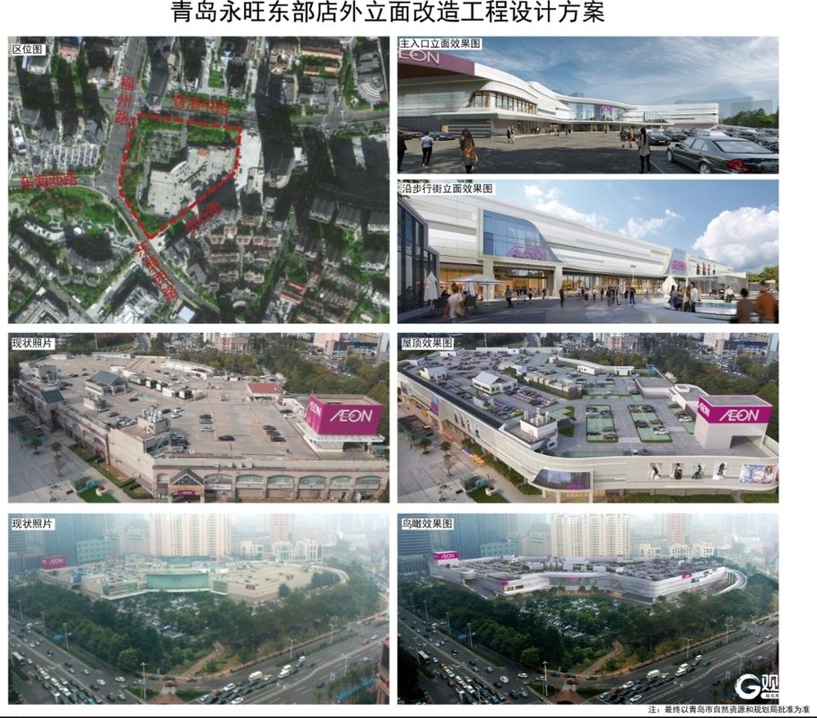 青岛日报社/观海新闻4月30日讯 今天,青岛市自然资源和规划局发布青岛永旺东部店外立面改造工程设计方案批前公示,项目位于市南区香港中路72号,由青岛永旺东泰商业有限公司负责进行外立面更新改造。