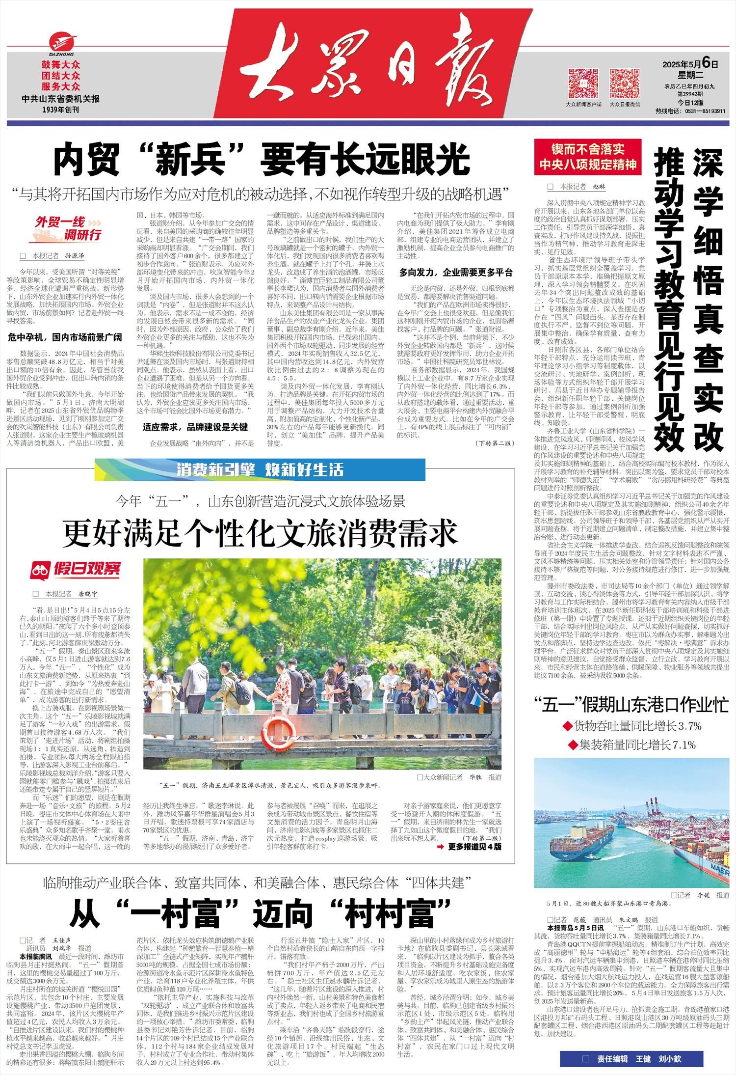 “五一”假期,泰山景区迎来客流小高峰,仅5月1日进山游客就达到7.6万人。今年“五一”,“个性化”成为山东文旅消费新趋势,从原来热衷“到此打卡一游”,到如今“为热爱奔赴山海”,在旅途中完成自己的“愿望清单”,成为游客的出行新需求。