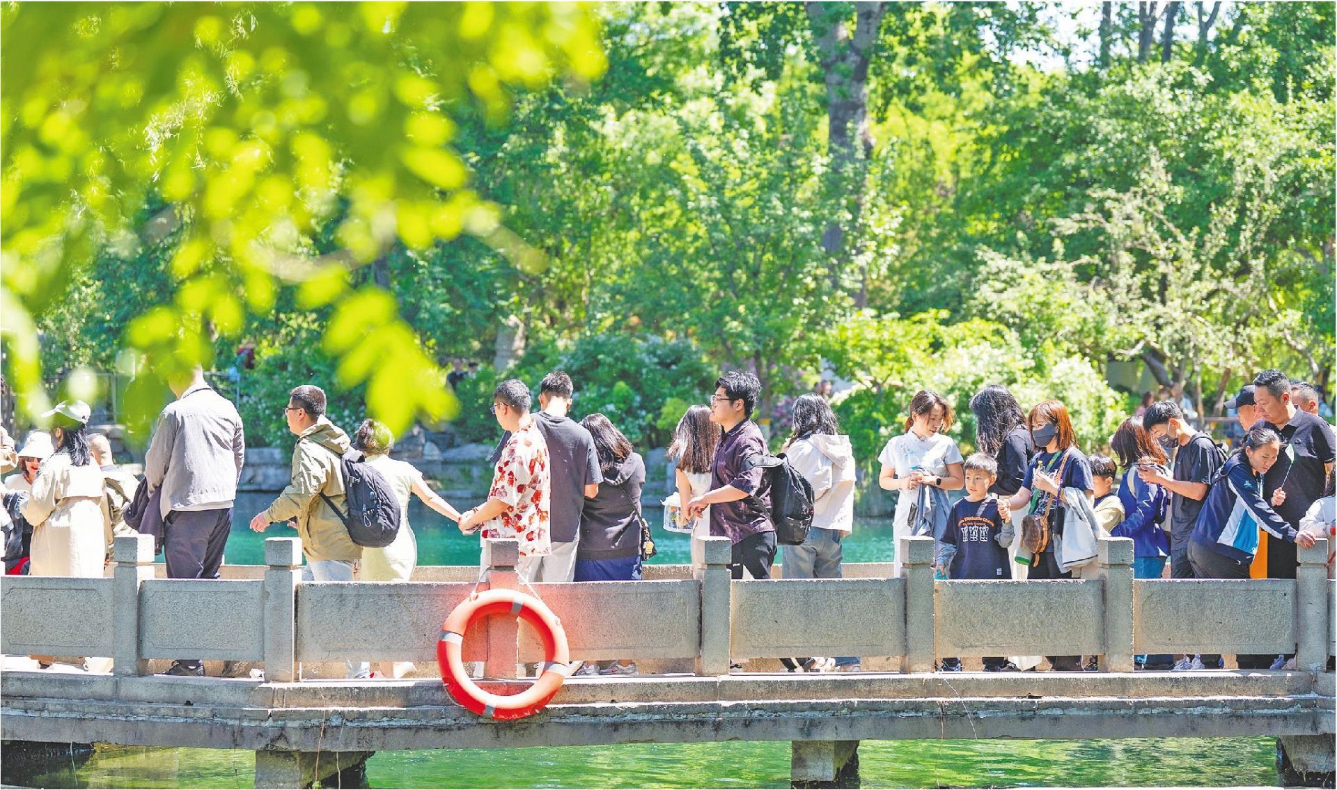 大众新闻记者毕胜报道 “五一”假期,济南五龙潭景区潭水清澈、景色宜人,吸引众多游客漫步泉畔。