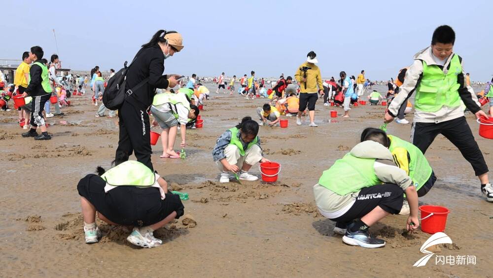 齐鲁网·闪电新闻5月6日讯“五一”假期期间,日照刘家湾赶海园推出“龙王献宝”主题活动,通过每日向滩涂投放3000斤野生蛤蜊,为游客打造新型赶海体验。