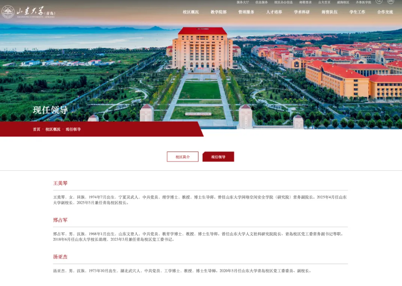 近日,山东大学青岛校区官网显示,王美琴已兼任青岛校区校长。