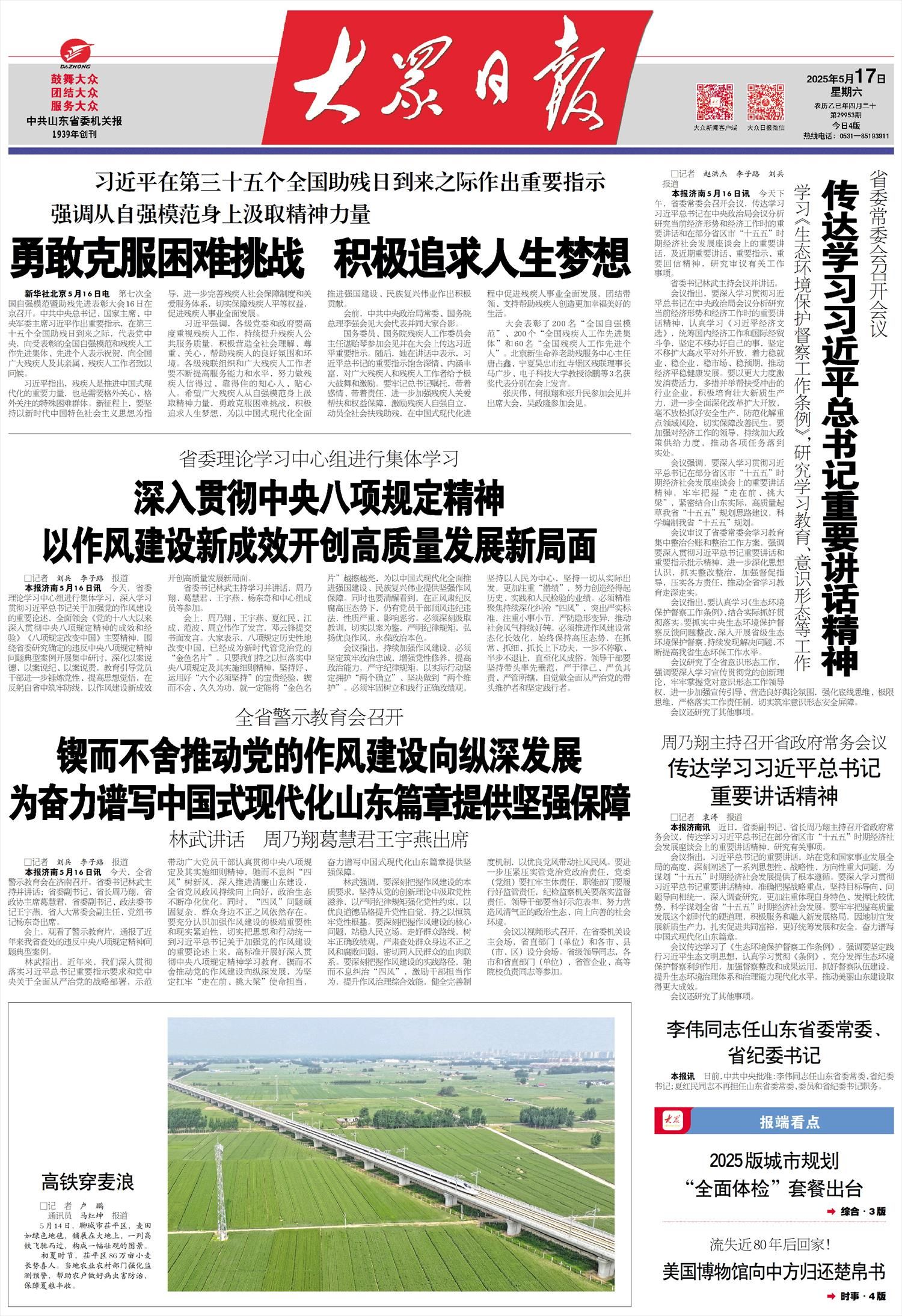 本报济南5月16日讯 今天,省委理论学习中心组进行集体学习,深入学习贯彻习近平总书记关于加强党的作风建设的重要论述,全面领会《党的十八大以来深入贯彻中央八项规定精神的成效和经验》《八项规定改变中国》主要精神,围绕省委研究确定的违反中央八项规定精神问题典型案例开展集中研讨,深化以案说德、以案说纪、以案说责,教育引导党员干部进一步锤炼党性、提高思想觉悟,在反躬自省中筑牢防线,以作风建设新成效开创高质量发展新局面。