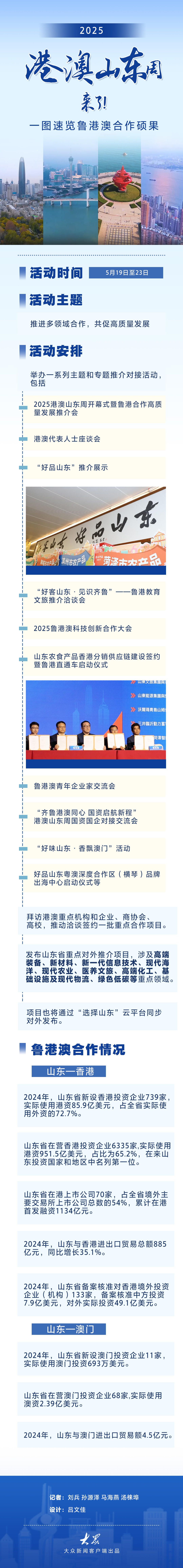 2025港澳山东周有哪些活动安排和亮点?近年来,鲁港澳合作取得哪些硕果?大众新闻记者带您一图速览!