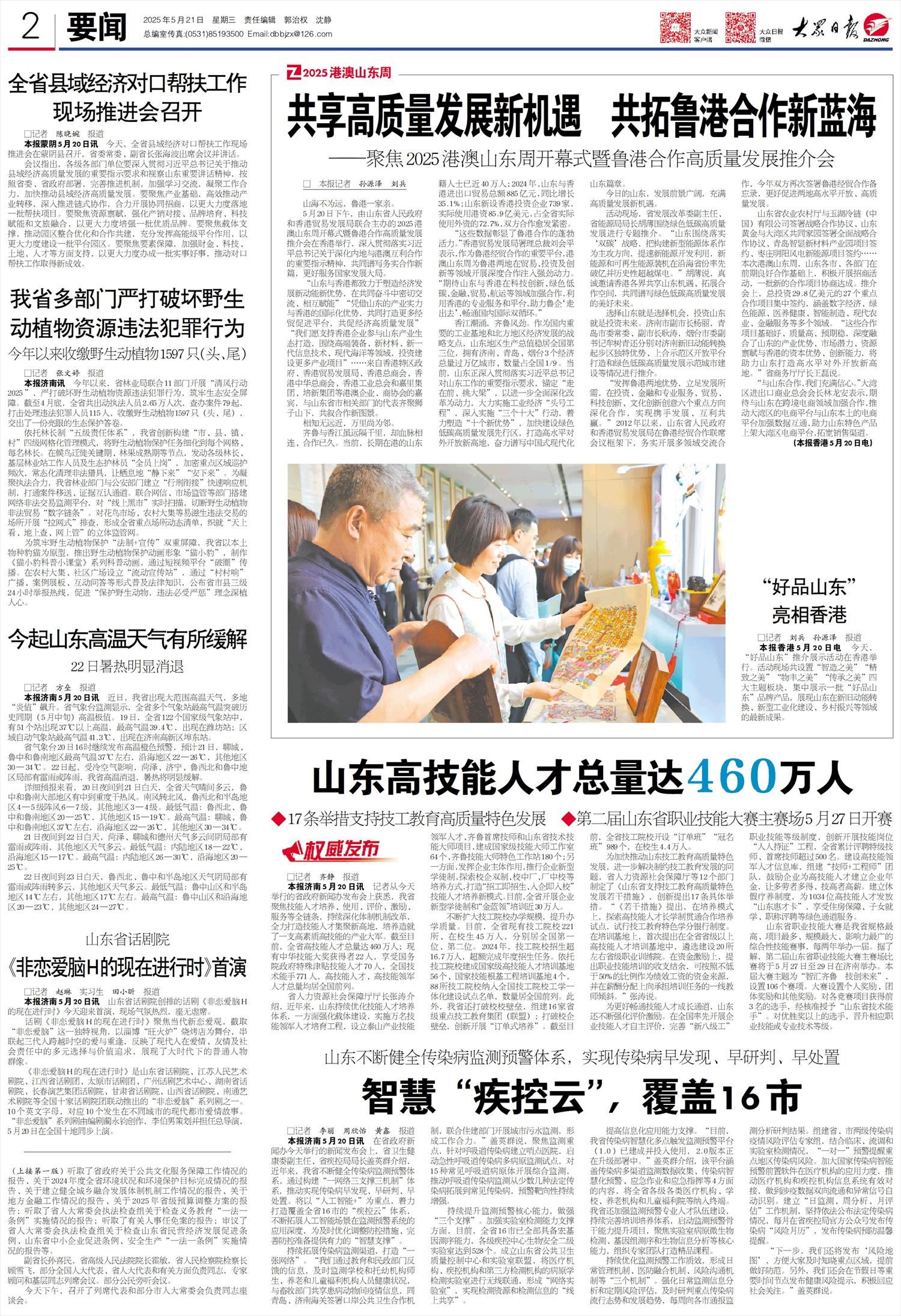 5月20日下午,由山东省人民政府和香港贸易发展局联合主办的2025港澳山东周开幕式暨鲁港合作高质量发展推介会在香港举行,深入贯彻落实习近平总书记关于深化内地与港澳互利合作的重要指示精神,共同谱写务实合作新篇,更好服务国家发展大局。