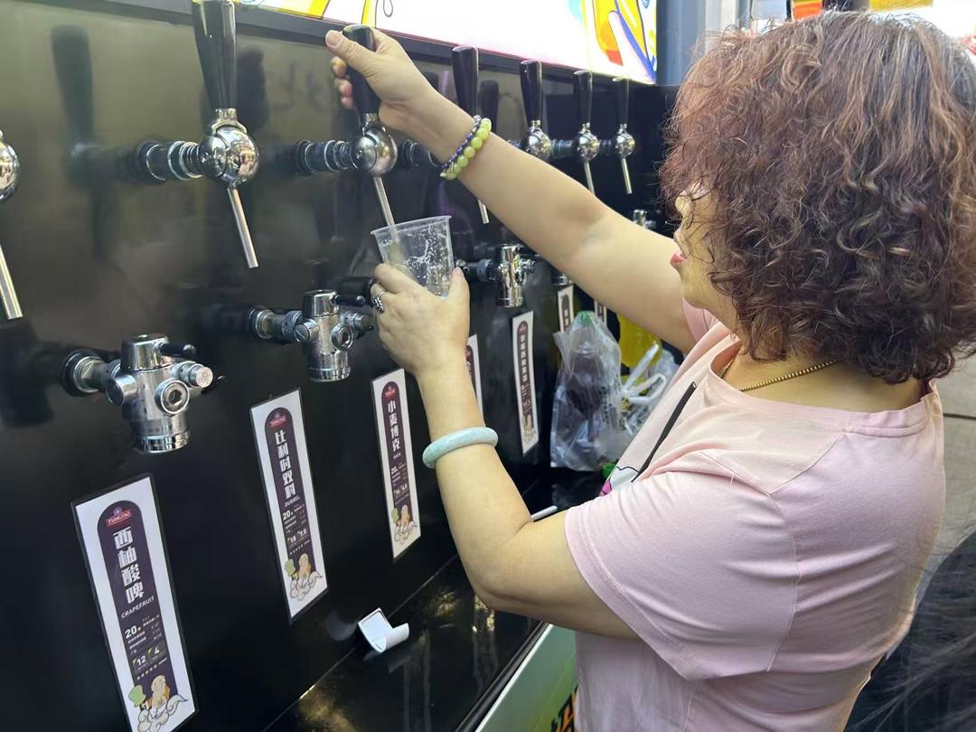 山东美食成为“顶流”。深圳观众一天喝完400斤青岛啤酒。现场工作人员介绍,他们带来36种口味的啤酒,吸引不少人打卡。最受欢迎的是怪味啤酒,比如“藤椒赛松”味啤酒。