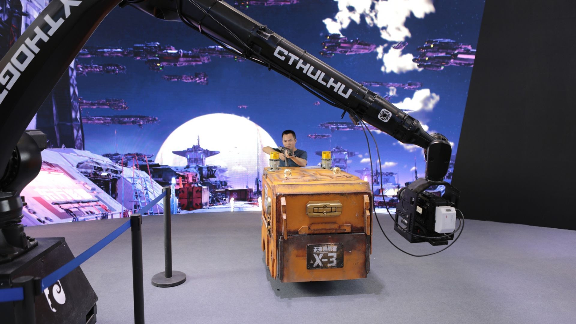 通过打造多个沉浸式场景,展示了智能制造的硬核实力。在青岛东方影都设置的“虚拟影棚”,观众可以在这里当主角,拍大片,通过影视机械臂操作的数字摄像机,亲身体验电影拍摄过程。