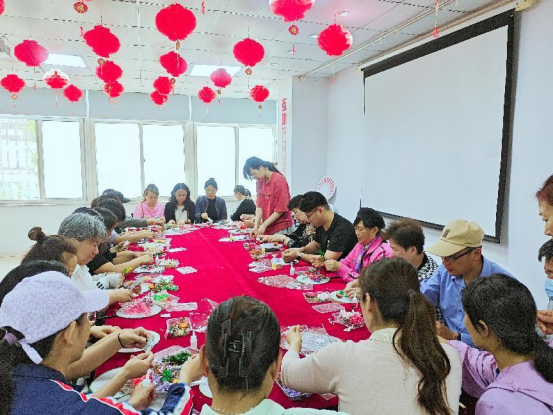 活动中,老师介绍了团扇的文化背景,详细讲解了团扇的制作方法及关键注意事项。在老师的指导下,大家纷纷化身“手作匠人”,充分发挥想象力和创造力,将色彩斑斓的永生花与精致的装饰品巧妙组合,创作出一幅幅既有古韵又有新风的团扇作品。每一幅作品都充满了创意和个性,展现了居民们对传统文化的热爱和对艺术的追求。