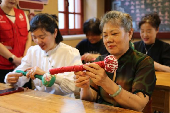 “咚咚”的敲击,不只是捶肩的律动,更是节日文化与居民情感的默契碰撞。“敲走疲惫”“敲来好运”,阵阵欢笑声在空气中回荡,整场活动氛围轻松而治愈。此次端午活动,以 “艾草锤制作”为特色亮点,以非遗为载体,将传统民俗与健康养生相结合,既延续了端午节驱邪避疫的文化内核,又通过现代创意赋予非遗技艺实用价值,让社区居民和辖区青少年在手工制作中传承文化记忆,提升了大家的养生保健意识,更让传统文化的纽带串联起邻里的温情,增强了社区凝聚力。