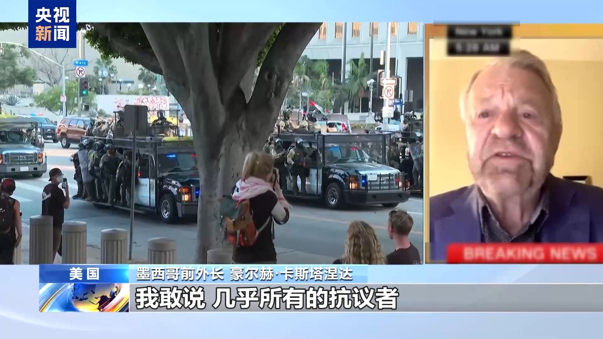 墨西哥前外长 豪尔赫·卡斯塔涅达:大多数抗议者,我敢说几乎所有的抗议者都是美国公民。因为一个没有证件的墨西哥公民或者哪怕是有合法永久居留身份的人得多鲁莽、多愚蠢才敢出去参加这些抗议活动。因为即使是合法的永久居民都很可能会被逮捕并驱逐出境,更别说没有证件的人了。