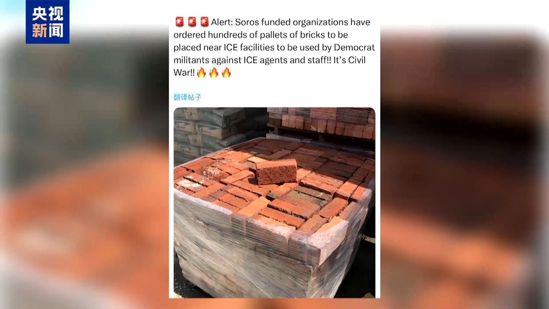文章举例说,有用户在社交媒体平台X发布了一张一大摞砖头的照片并配文说,这些砖头是由货币投机商乔治·索罗斯支持的非营利组织购买,放在美国移民与海关执法局的办公场所附近,给所谓的“民主党武装分子”用来对付移民与海关执法局的工作人员用的。然而真实情况是,这是马来西亚的一家建筑材料批发商在网站上发布的一张介绍商品的照片。尽管平台在帖文下方明确指出了这一点并提供了相关网站链接,但这条帖文仍被浏览了82万次之多,并得到近万次转发。