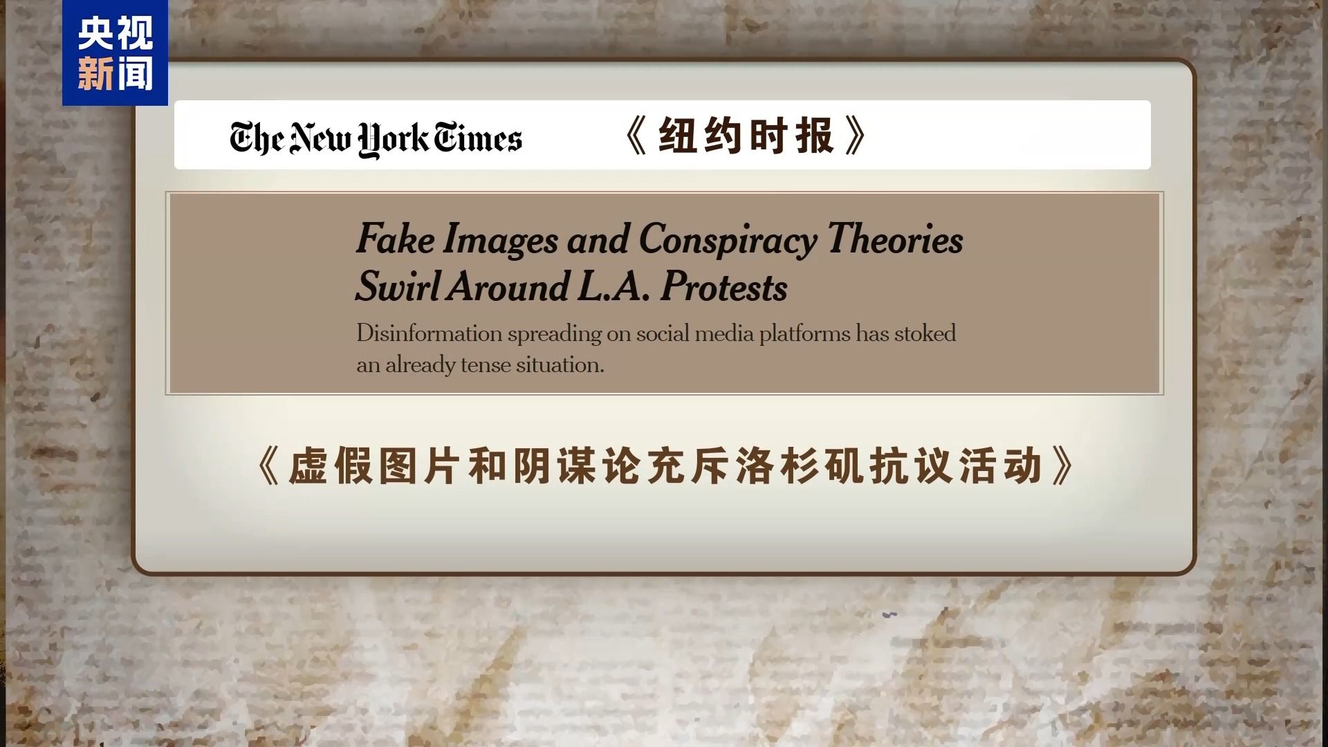 《纽约时报》10日同样刊文指出,随着针对抓捕非法移民行动的抗议活动在洛杉矶展开,误导性的照片、视频和文字在社交媒体上广泛传播。