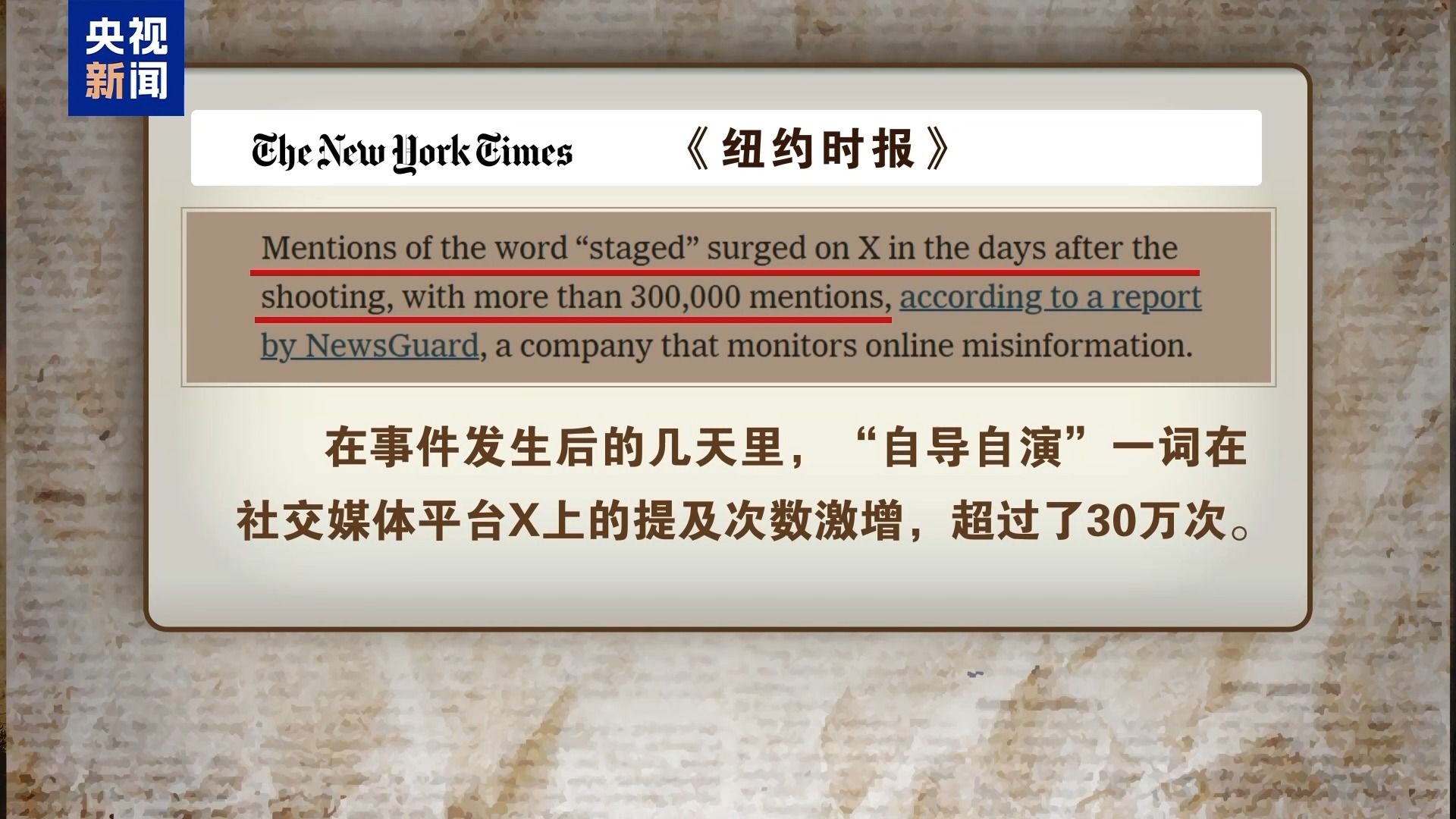 对阴谋论和虚假信息的传播,既发生在共和党的支持者中,也发生在民主党的支持者之中。2024年7月13日,特朗普在宾夕法尼亚州的竞选集会现场遭枪击受伤。随后,这起事件是特朗普“自导自演”的说法很快就在网络上传播开来,《纽约时报》说,在事件发生后的几天里,“自导自演”(staged)一词在社交媒体平台X上的提及次数激增,超过了30万次。