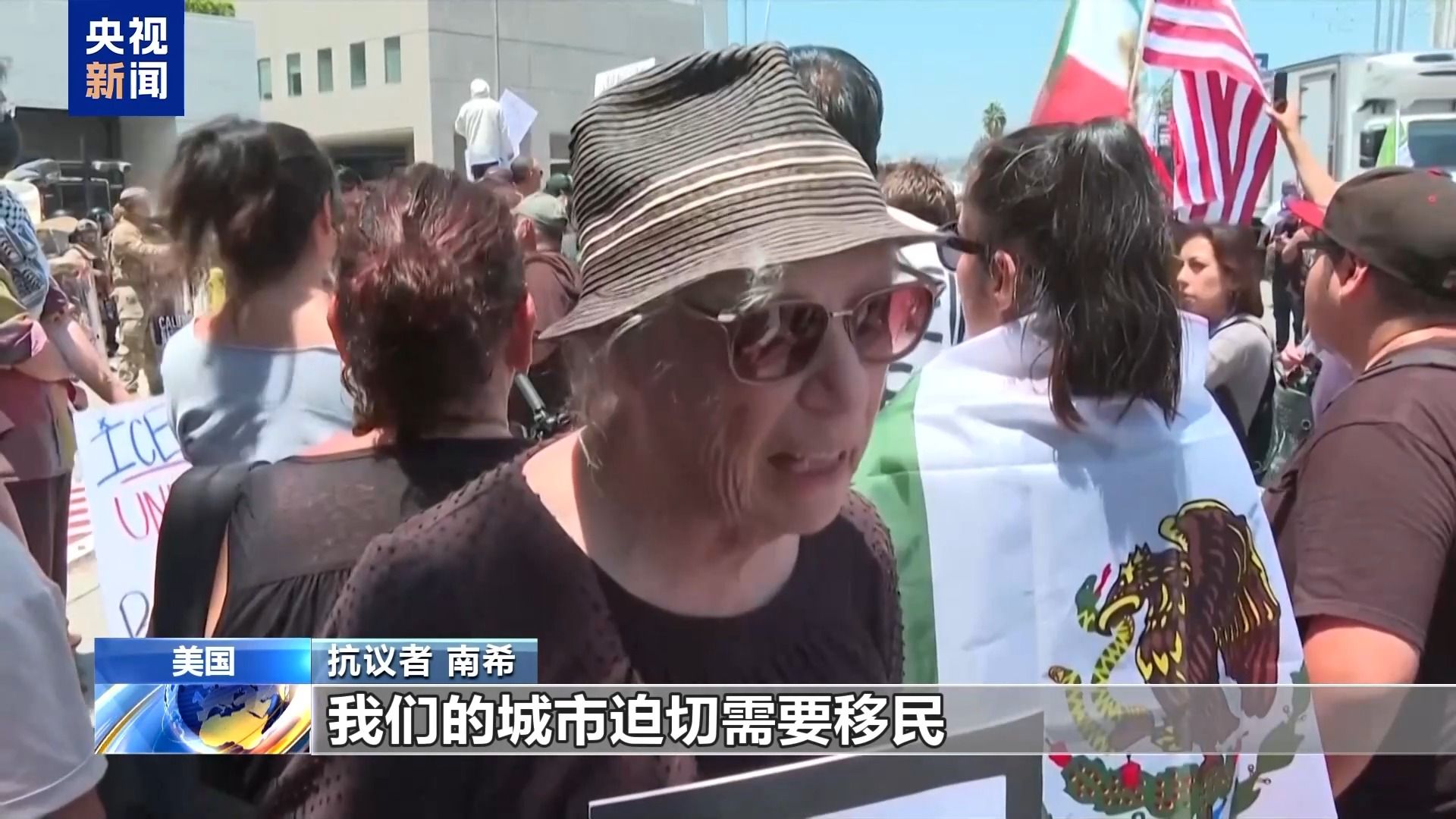 抗议者 南希:我们的城市迫切需要移民,我们刚刚经历了毁灭性山火,失去了1.4万栋建筑。而回头看看这座城市的建设者,正是移民群体。因此,针对移民的攻击让所有洛杉矶市民感到痛心。这毫无道理可言,他们绝大多数都是安分守己的。