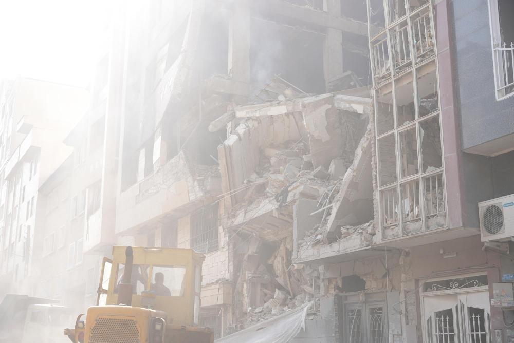 这是6月13日在伊朗首都德黑兰拍摄的在以军袭击中受损的建筑。新华社发